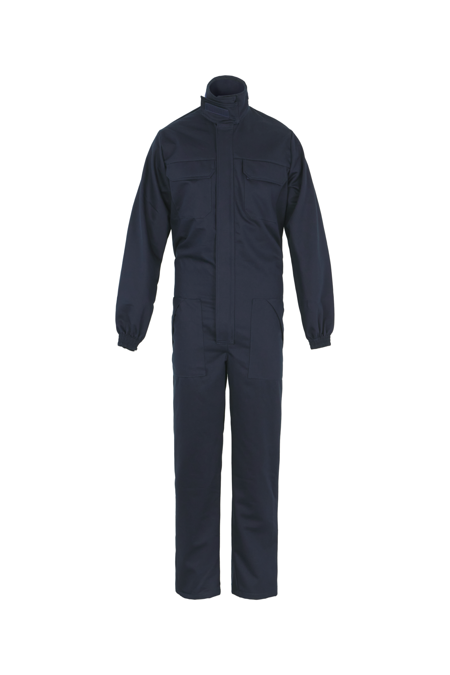 El buzo de trabajo ofrece cierre frontal con cremallera y tapeta con velcro, cuello camisero, cintura elástica trasera, un bolsillo superior y dos inferiores con tapeta y velcro, y puños ergonómicos con goma.