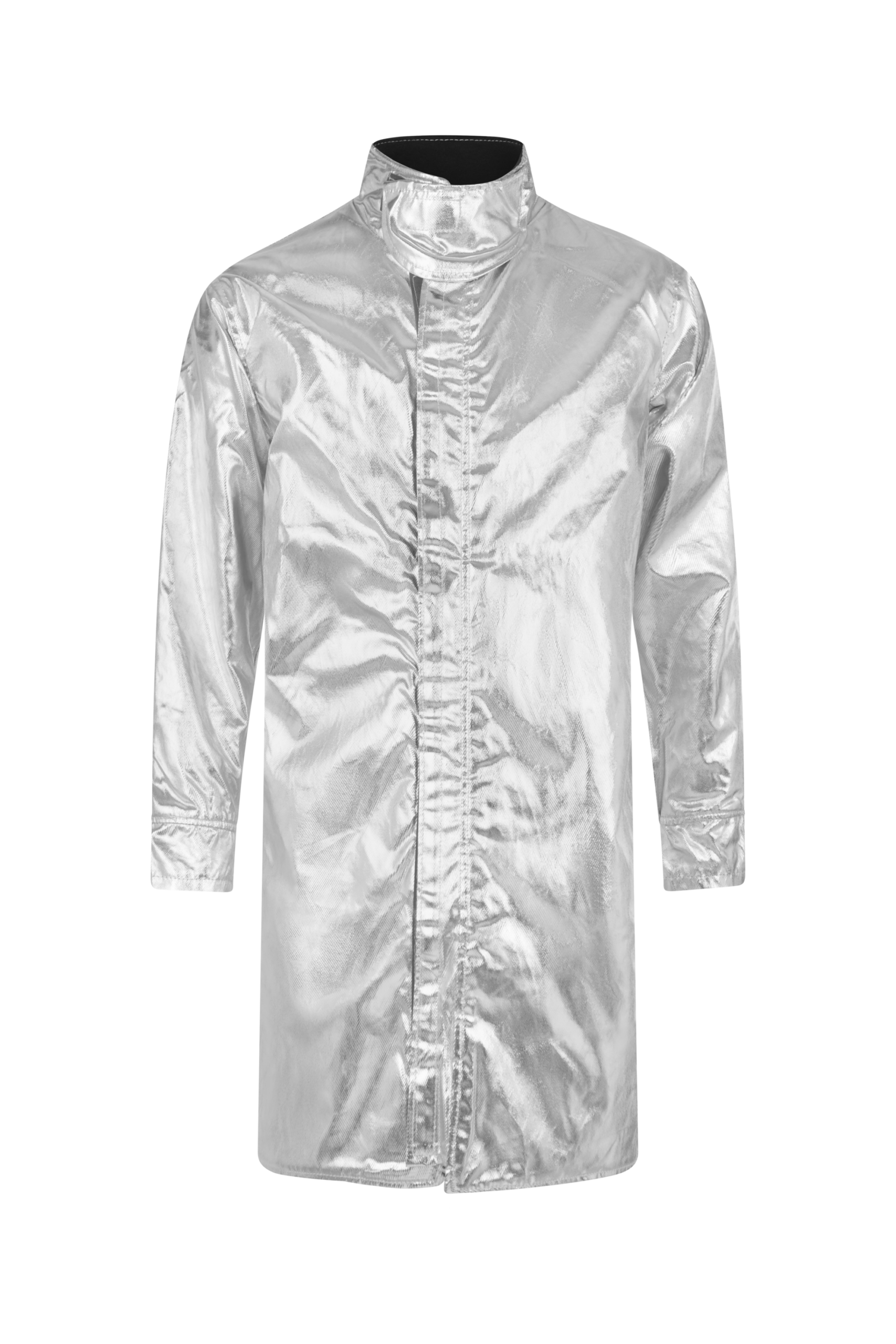 Chaquetón concebido para proporcionar confort y facilitar la libertad de movimiento en el entorno de trabajo. Su longitud extendida proporciona una mayor cobertura, alcanzando hasta por encima de la rodilla. El cierre frontal se realiza mediante cremallera de desprendimiento rápido, protegida por tapeta exterior con fijación mediante velcro. Incorpora cuello alto con cierre mediante tapeta con velcro, proporcionando un ajuste seguro y una adecuada protección de la zona cervical. La parte interior del cuello está confeccionada en material afelpado para mejorar el confort. Los puños permiten el ajuste de la prenda en la zona de la muñeca. Incorpora un puño interior de Kevlar como elemento adicional de protección. Su diseño favorece la funcionalidad y el confort durante el uso, proporcionando una mayor superficie de protección.