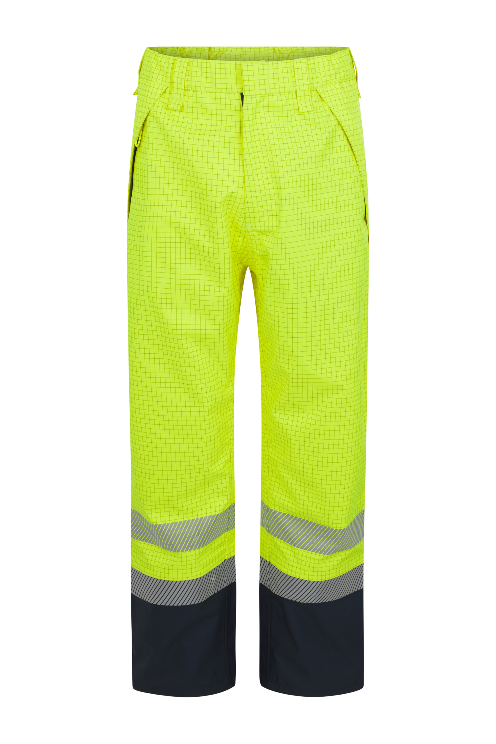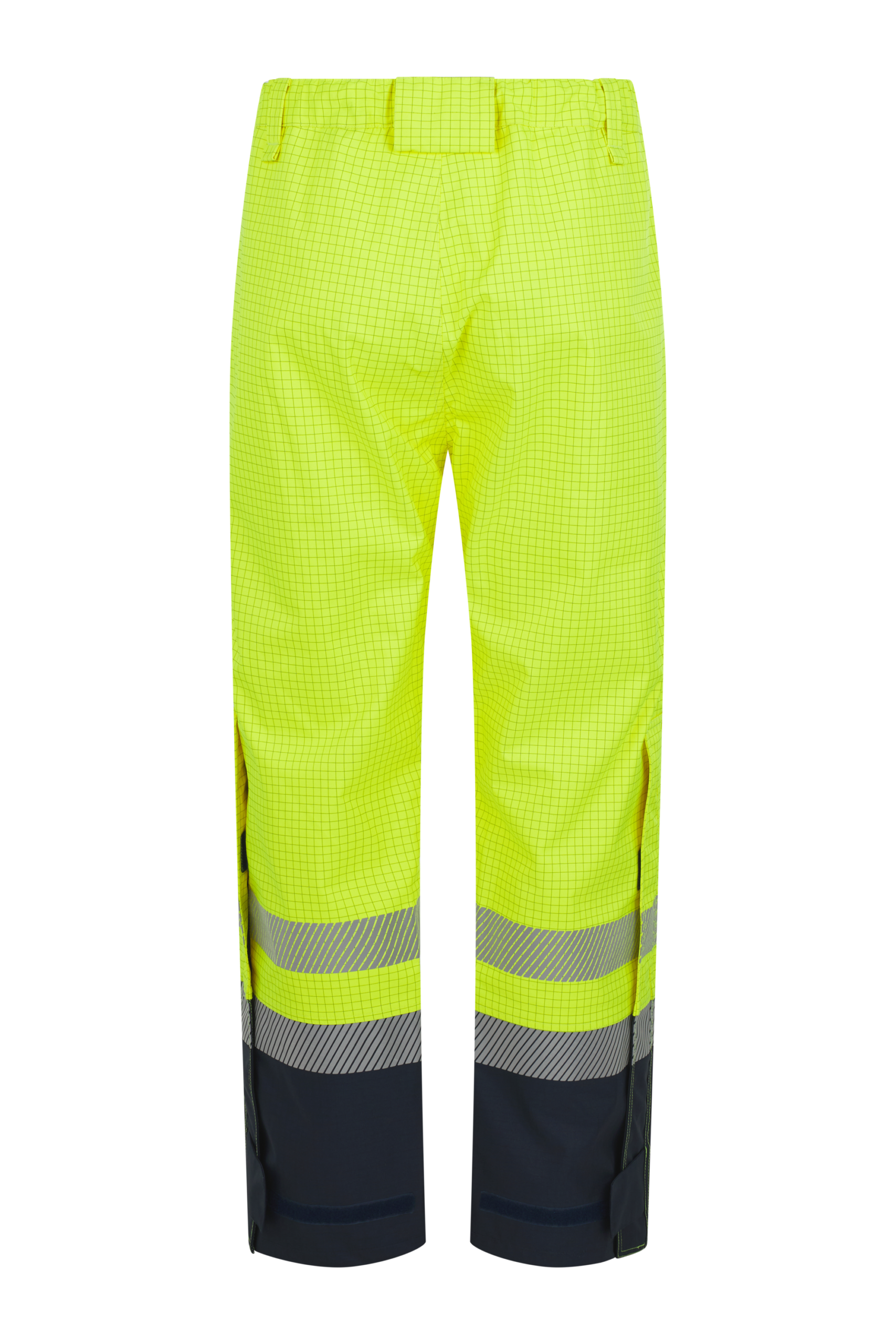 Pantalón impermeable para protección frente a lluvia y clima adverso, con cintura elástica y cierre mediante bragueta y botón. Incorpora dos bolsillos delanteros tipo francés, cubiertos y con cremallera estanca. Las aberturas laterales con cremallera y tapeta con velcro facilitan la colocación incluso con botas de seguridad, mejorando la funcionalidad y el uso diario.